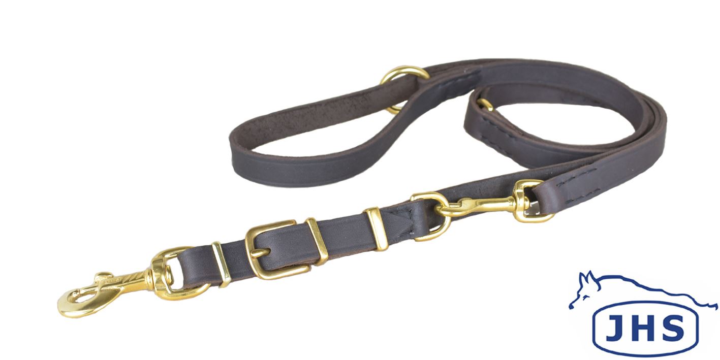 Führleine handgenäht 3-fach verstelbar, Länge 220cm aus Fettleder, mit auswechselbarem Haken.